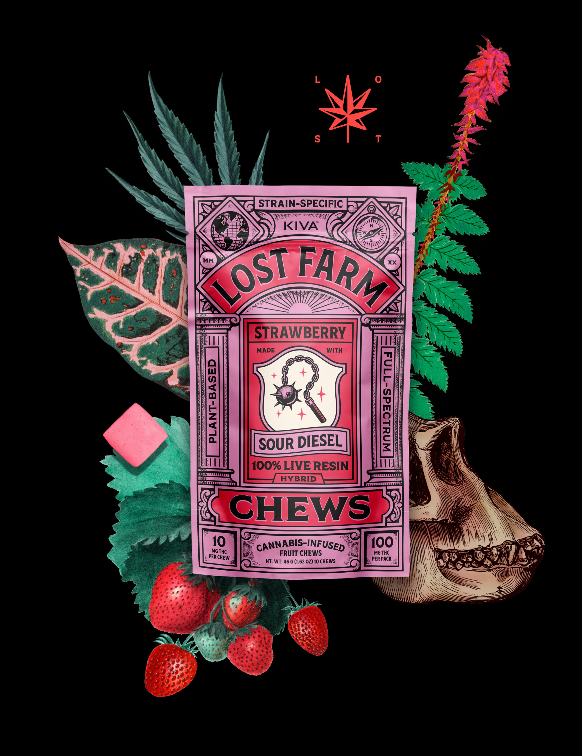 Infused with Sour Diesel Live Resin Strain Notes With a reputation both dank and sweet, the legendary sativa strain Sour Diesel yields an unmistakable skunk citrus funk like no other flower out there. Though the lineage is a bit of a mystery, Sour Diesel is reported to be a descendent of Chemdawg and Super Skunk. Flavor Notes Tasting like your favorite chewy pink nostalgic edible, this fruit chew smacks of strong strawberry flavors with notes of citrus from the Sour Diesel strain.